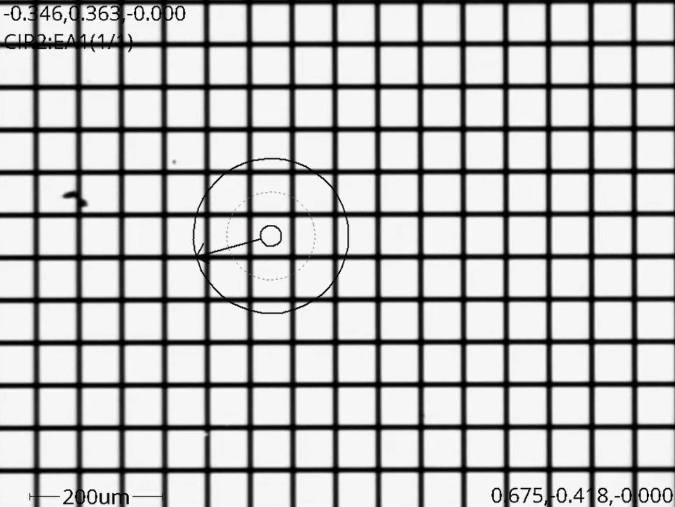 Below is a video of the same program used on our mesh gauge. This gauge is used to understand how changes to programming affect measurement results. We use its known feature sizes to understand accuracy and repeatability.